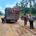 Kapolsek Kerinci Kanan Bersama Kanit Binmas Membantu Truk Angkutan Buah Sawit yang Lagi Mogok di Desa Simpang Perak Jaya