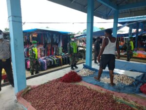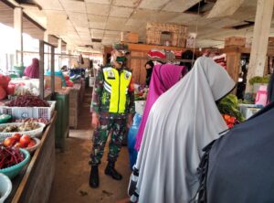 Putus Mata Rantai Penyebaran Covid-19, Babinsa Koramil 03/Siak Tegakan Disiplin Protokol Kesehatan di Pasar Tradisional.