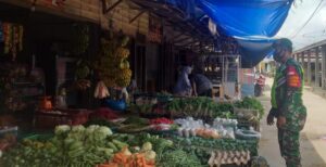 Disiplinkan Protokol Kesehatan Babinsa Koramil 03/Siak Awasi Pasar Tradisional.