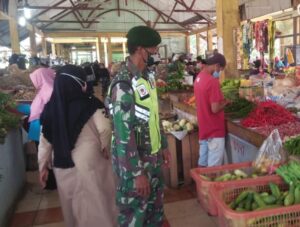 Sambangi Pasar Tradisonal Belantik, Babinsa Laksanakan PDMPK Guna Memutus Mata Rantai Covid 19.