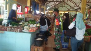 Babinsa dan Bhabinkamtibmas Himbau Pengunjung Pasar Agar Terapkan Protokol Kesehatan