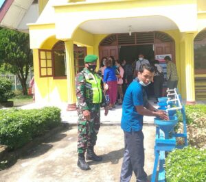 Babinsa Koramil 03/Siak Laksanakan Disiplin Prokes di Gereja HKBP Wilayah Kerja Teritorial