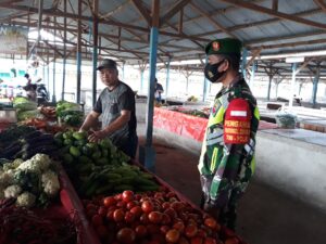 Babinsa Melaksanakan Gaplin Protokol Kesehatan Di Pasar Tradisional