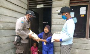 Bhabin Brigadir Jon Hendri Membagikan Bansos ke Warga Kurang Mampu di Kemuning Muda