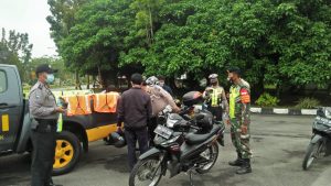 Koramil 03/Siak, Polsek Siak dan Satpol PP Siak Laksanakan Operasi Yustisi Penegakan Prokes di Kota Siak