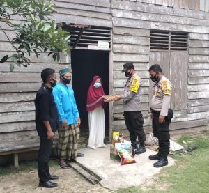 Jum’at Berkah, Kapolsek Kerinci Kanan Bagikan Sembako ke Warga yang Terdampak Covid 19