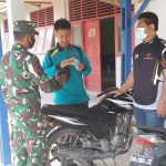 Babinsa Kampung Delima Jaya Bersama Bhabinkamtibmas Melaksanakan Razia Masker Di Pintu Masuk Kampung