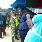 Babinsa Bersama Bhabinkamtibmas Dan Aparatur Kampung Memberikan Himbauan Pengunjung Pasar Dan Pedagang