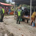 Babinsa Koramil 03/Siak Bersama Bhabinkamtibmas Tegakan Disiplin Prokes di Pasar Pagi Kampung Simpang Perak Jaya