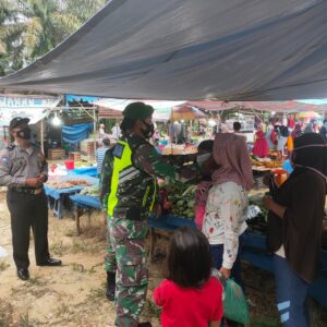 Babinsa Koramil 03/Siak Berikan Himbauan Prokes Dan Bagikan Masker Kepada Warga