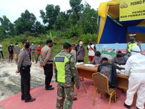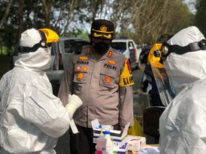 Kapolres Siak Pimpin Pelaksanaan Tes Swab Kepada Masayarakat Dari Luar Kota Di Posko Penyekatan