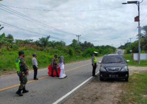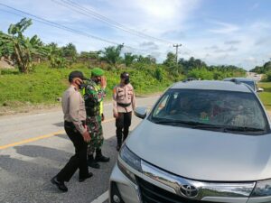 Aparat Gabungan Terus Berjaga 24 jam di Pos Penyekatan Perbatasan Kabupaten Siak Dengan Kabupaten Pelelawan