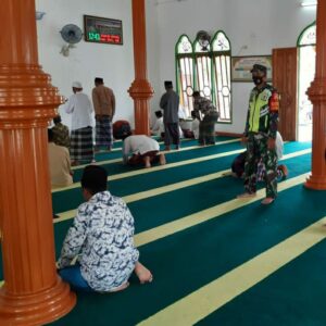 Babinsa Pantau Penerapan Protokol Kesehatan di Masjid Nurul Iman Kampung Jati Mulai