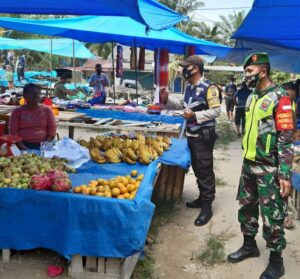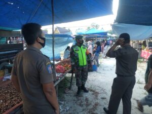 Penerapan Disiplin Protokol Kesehatan, Babinsa Koramil 03/Siak Bersama Satpol PP Terus Awasi Pasar Tradisional