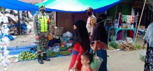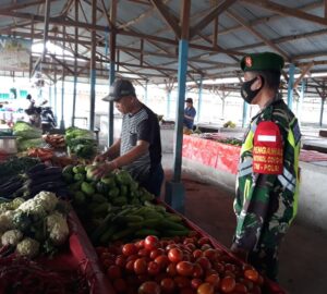 Babinsa Koramil 03/Siak Serta J. Silalahi Laksanakan Penegakan Disiplin Protokol Kesehatan di Pasar Tradisional.