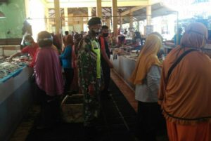 Serka Joni Babinsa Koramil 03/Siak Melaksanakan Penegakan Disiplin Prokes di Pasar Tradisional Belantik Raya