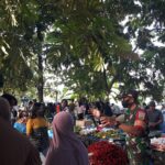 Babinsa Koramil 01 Siak Serka Junaidi Ajak Masyarakat Patuhi Protokol Kesehat di Pasar Kampung Jati Mulya