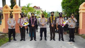 Kapolres Siak Pimpin Upacara Purna Bakti Lima Anggota Polres Siak