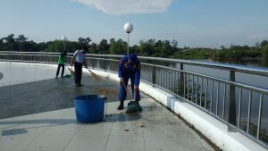 HUT Pol Airud ke- 70, Sat Pol Air Polres Siak Bersihkan Fasilitas Umum Di Tepian Sungai Siak