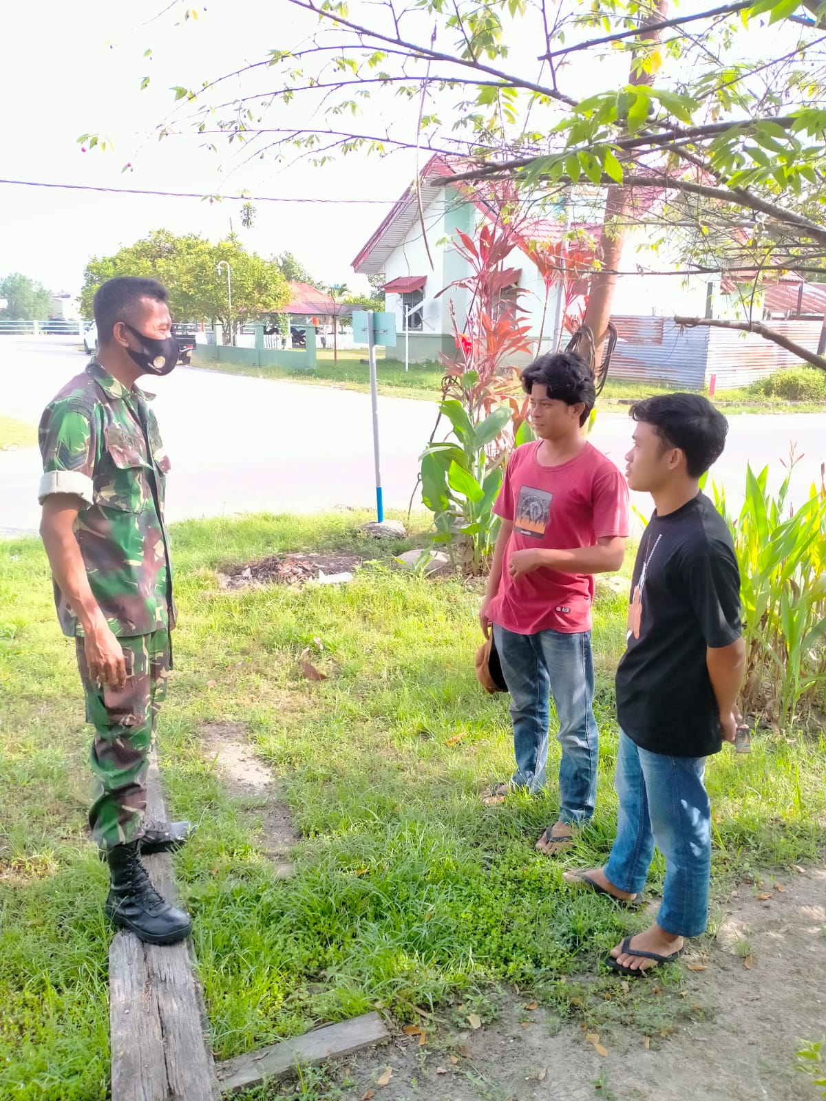 SIAK- Mencegah Wabah Covid 19, Babinsa Koramil 01/Siak Jajaran Kodim 0322 /Siak Serka Joni bersama Bhabinkamtibmas melaksanakan kegiatan himbauan protokol kesehatan(Prokes) Covid-19 kepada masyarakat Kampung Rempak, Kecamatan Siak, Kabupaten Siak.