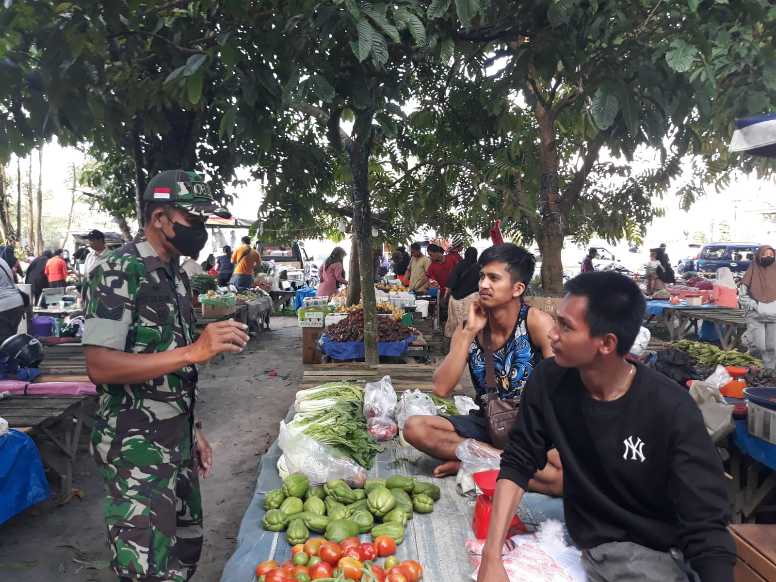Cegah Covid 19, Babinsa Koramil 01 Siak Melaksanakan Kegiatan Himbauan Prokes Kepada Masyarakat di Pasar