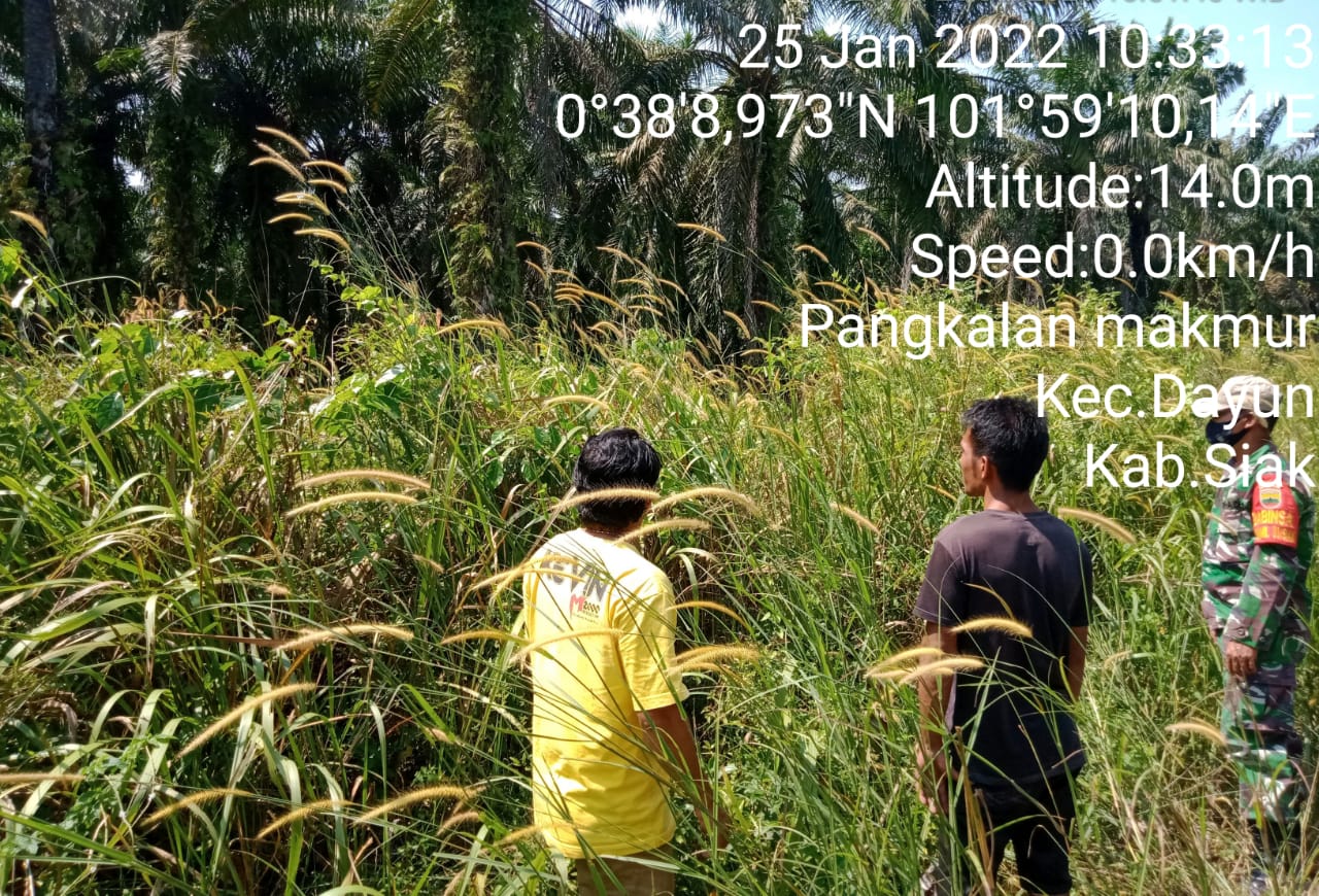 SIAK- Dalam upaya mencegah terjadinya kebakaran hutan dan lahan(Karhutla) diwilayah Teritorial Koramil 01/Siak, Kodim 0322/Siak, Anggota Koramil 01/Siak Serda Ponidi melaksanakan kegiatan Patroli dalam rangka mencegah kebakaran hutan dan lahan (Karhutla) di Kampung Pangkalan Makmur Kecamatan Dayun, Kabupaten Siak. Selasa ,25 Januari 2022.
