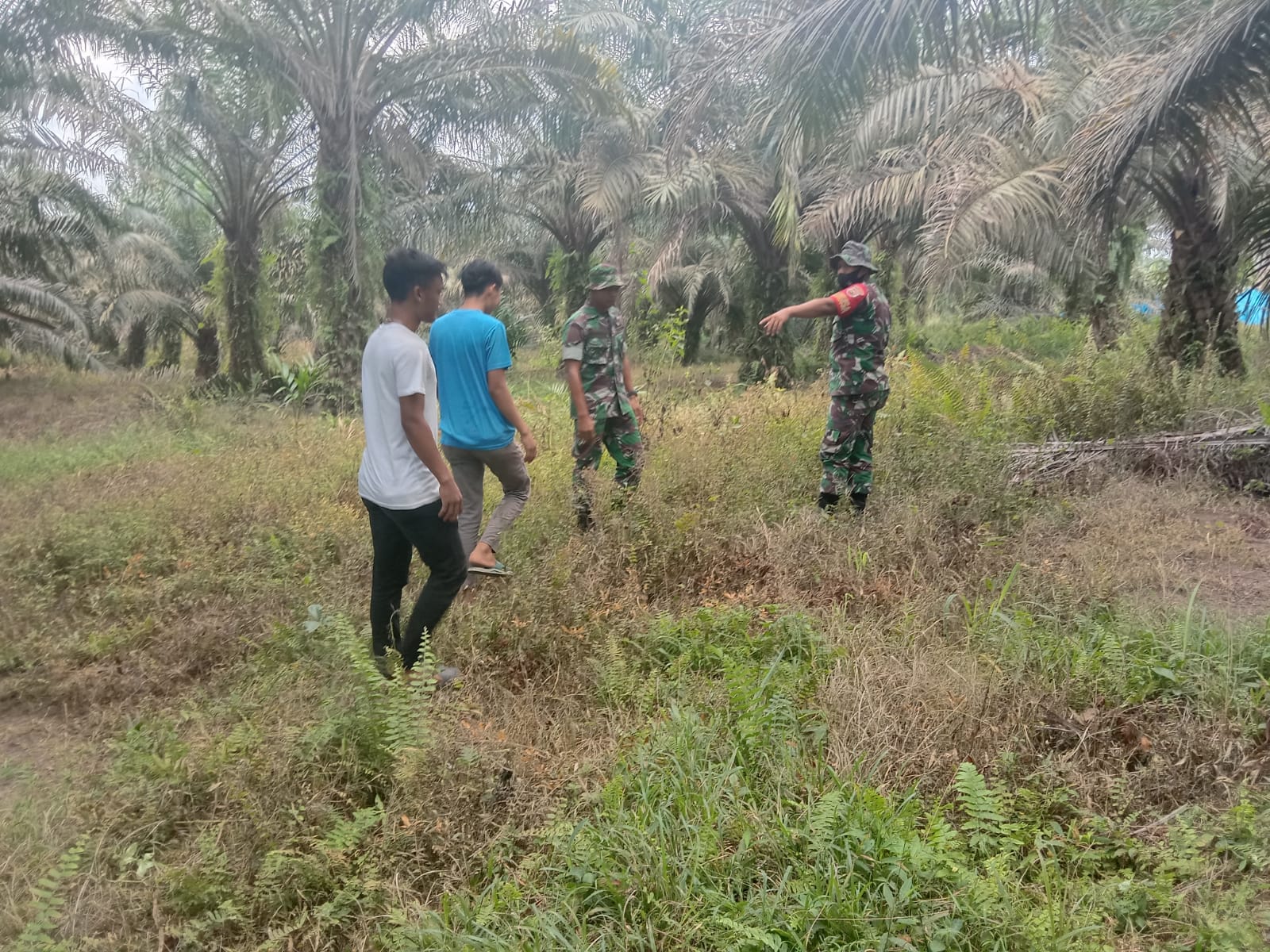 SIAK- Babinsa Koramil 01/Siak Kodim 0322/Siak dan rekan Babinsanya bersama masyarakat Kampung Benteng Hilir melaksanakan patroli cegah karhutla di lahan yang rawan terbakar pada Kamis (13/10/ 2022).
