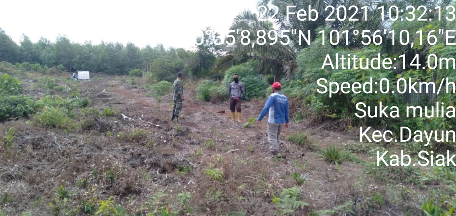 SIAK- Dalam rangka mencegah terjadinya kebakaran hutan dan lahan (Karhutla), Babinsa Koramil 01/Siak Jajaran Kodim 0322/Siak Serda Ponidi melaksanakan kegiatan Patroli Karhutla di Kampung Suka Mulia Kecamatan Dayun, Kabupaten Siak. Selasa ,22 Februari 2022.