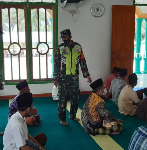 Kerinci Kanan – Babinsa Kampung Jati Mulia Koramil 03/Siak Sertu Junaidi Silalahi, monitoring shalat Jumat di lingkungan Kampung Jati Mulia Kec. Kerinci Kanan Kab. Siak, Jumat (18/06/2021).