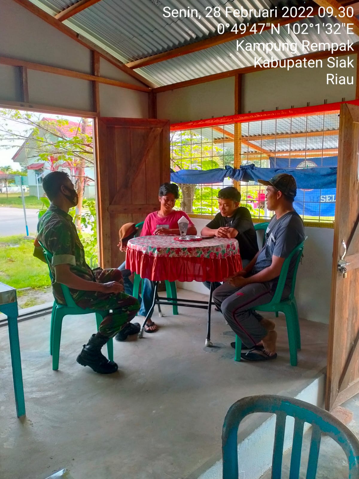 SIAK- Babinsa Koramil 01/Siak jajaran Kodim 0322/Siak Serka Joni melaksanakan kagiatan Komunikasi Sosial (komsos) dan himbauan protokol kesehatan kepada masyarakat Kampung Rempak Kecamatan Siak Kabupaten Siak. Senin,28 Februari 2022