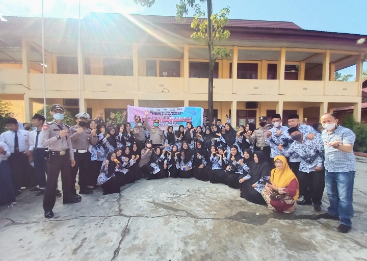 Dalam HUT PGRI & HGN 2022 di SMP N 1 Siak, Kapolsek Siak Pesan Jauhi Narkoba serta Kenalan Remaja dan Juga Bijak Dalam Penggunaan Medsos