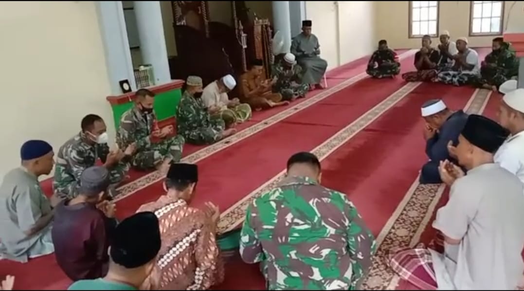 Mempura – Personel Koramil 03/Siak Bersama Masyarakat Kampung Benteng Hulu menggelar Doa Bersama Dalam Rangka Menyambut Hari Ulang Tahun (HUT) TNI yang ke-76 Tahun 2021 yang bertempat di Masjid Al- Muqaromah Kampung Benteng Hulu Kecamatan Mempura Kabupaten Siak, Selasa (05/10/2021).