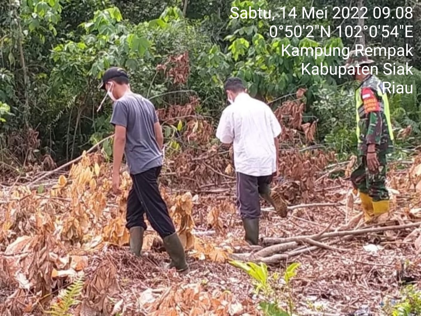 SIAK- Dalam rangka mencegah terjadinya kebakaran Hutan dan Lahan, Babinsa Koramil 01/Siak jajaran Kodim 0322/Siak Serka Joni melaksanakan kegiatan Patroli Karhutla di Kelurahan Kampung Rempak Kecamatan Siak Kabupaten Siak. Sabtu,14 Mei 2022.