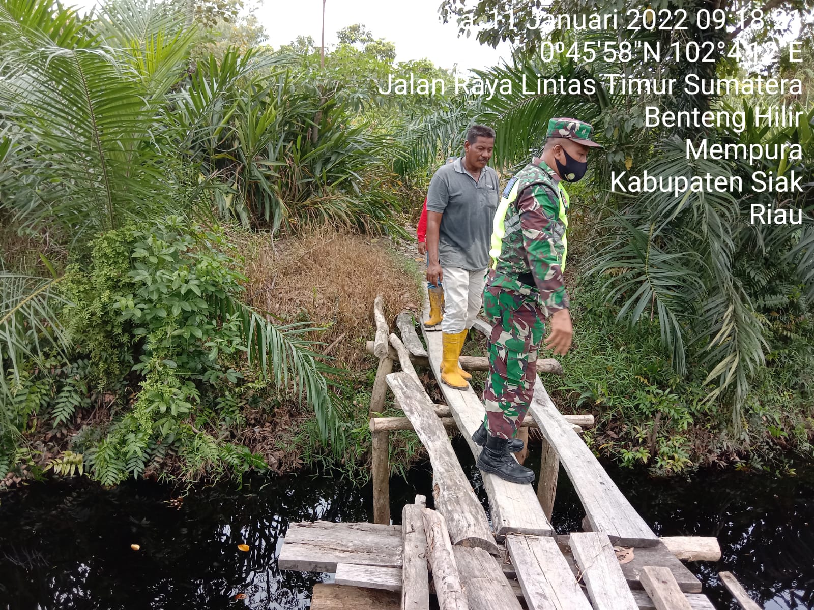 SIAK- Dalam rangka mencegah terjadinya kebakaran Hutan dan Lahan, Babinsa Koramil 01/Siak, Serda Ariyanto bersama Masyarakat Peduli Api(MPA) melaksanakan kegiatan Patroli Karhutla di Kampung Benteng Hilir, Kecamatan Mempura Kabupaten Siak. Selasa,11 Januari 2022.