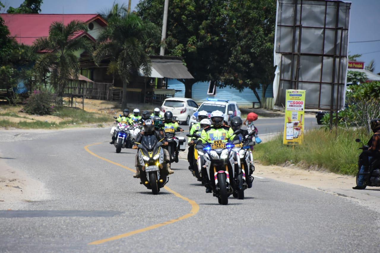 Dengan mengendarai kendaraan Roda Dua Patroli Ditlantas, rombongan yang disertai beberapa pejabat Polda dan Korem berangkat dari Mapolda Riau menuju titik pos PPKM Imbang Kampung Bukit Agung Kecamatan Kerinci Kanan Kabupaten Siak. Diketahui, bahwa wilayah ini memiliki angka terkonfirmasi positif covid-19 paling tinggi di Kabupaten Siak. Berdasarkan data jumlah masyarakat yang positif covid-19 sebanyak 6 orang, diantaranya 4 dilakukan isolasi mandiri dan 2 orang dilakukan isolasi di rumah sakit Efarina. Sedangkan untuk masyarakat di Kabupaten Siak yang sudah sembuh sampai saat ini berjumlah 9 orang.