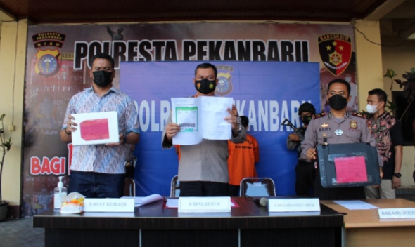 PEKANBARU – Dua orang pria warga Pekanbaru inisial HH (38) dan JO (38) tertangkap tangan memalsukan surat Polymerase Chain Reaction (PCR) COVID-19 dengan hasil negatif. Keduanya ketahuan saat akan terbang di Bandara Internasional Sultan Syarif Kasim (SSK) II Pekanbaru.
