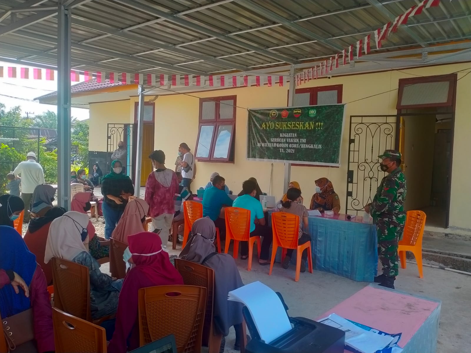 “Mari kita dukung program vaksinasi demi meningkatkan kekebalan daya tahan tubuh warga terhadap serangan Covid-19”, kata Kapten Inf Junaidi.