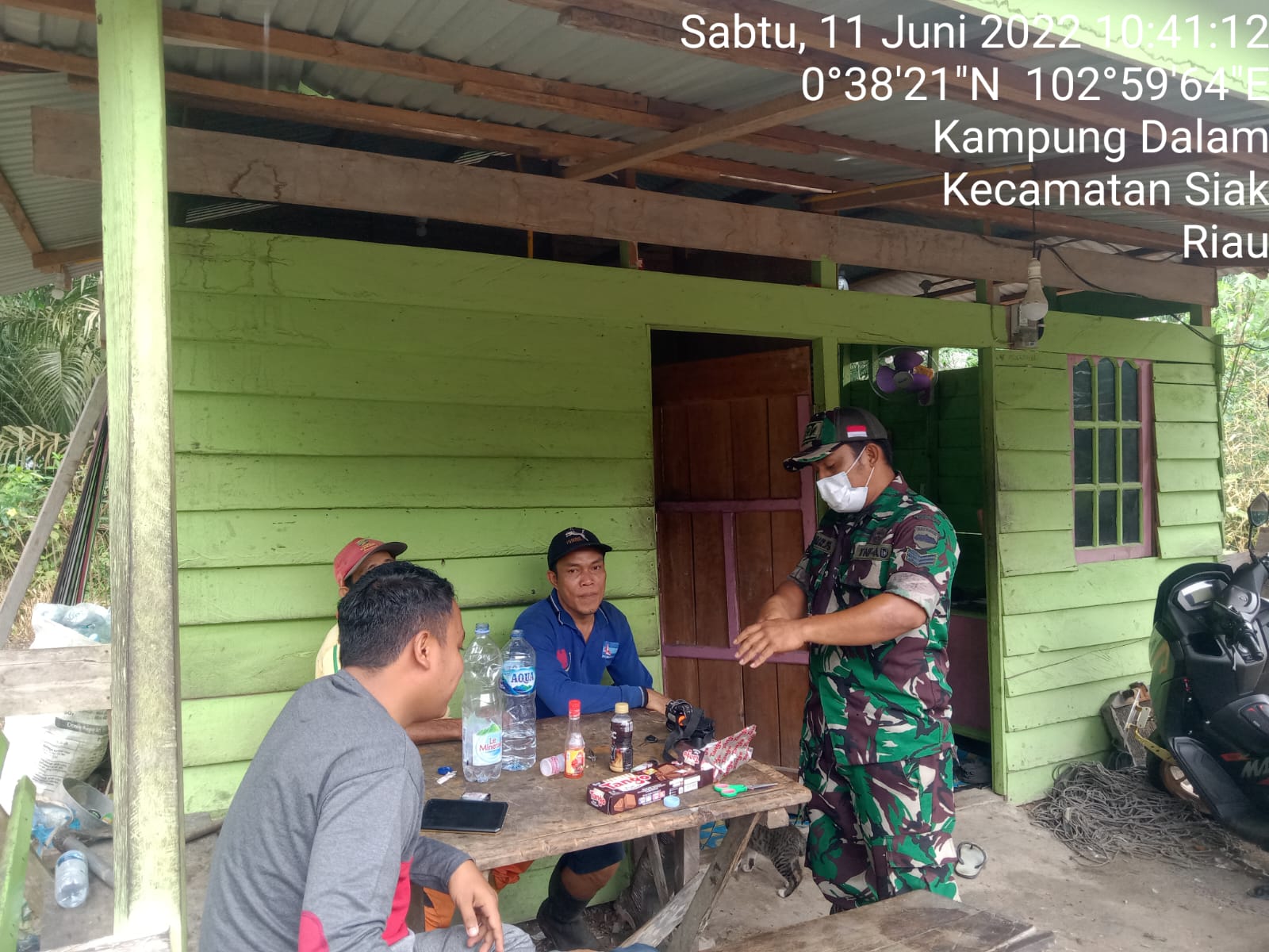 SIAK- Babinsa Koramil 01/Siak.Kodim 0322/Siak Serka Amir P. Simorangkir melaksanakan kagiatan Komunikasi Sosial (komsos) dan himbauan protkes kepada masyarakat kelurahan kampung Dalam Kecamatan Siak Kabupaten Siak. Sabtu,11 Juni 2022.
