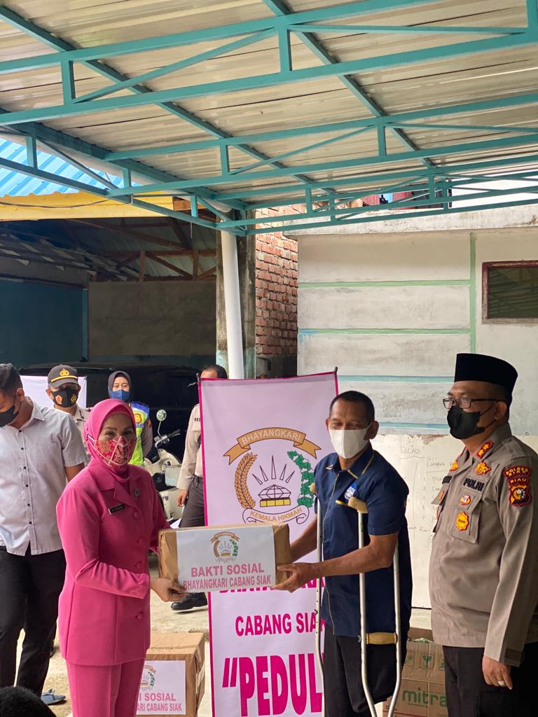 SIAK (DP) Langsung dipimpin Kapolres Siak, AKBP Gunar Rahadianto SIK MH didampingi Kapolsek Tualang, Alvin, masing-masing bersama istri, rombongan Tim Ramadhan Peduli Polres Siak datang ke Yayasan Fajar Amanah Perawang Kecamatan Tualang, pada Kamis (7/4) sore.
