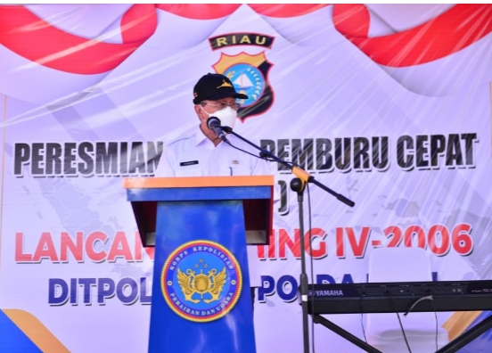 PEKANBARU – Gubernur Riau (Gubri) Syamsuar menyampaikan harapannya atas peresmian Kapal Polisi Cepat (KPC) Lancang Kuning IV – 2006 Dipolairud Polda Riau
