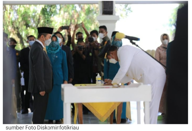 Adapun pelantikan tersebut sesuai dengan Surat Keputusan Menteri Dalam Negeri Nomor 131.14-1042 Tahun 2021 tentang Perubahan Kedua atas Keputusan Menteri Dalam Negeri Nomor 131.14.281 Tahun 2021 tentang Pengesahan Pengangkatan Kepala Daerah dan Wakil Kepala Daerah Hasil Pemilihan Kepala Daerah Serentak Tahun 2020 di Kabupaten dan Kota Provinsi Riau.