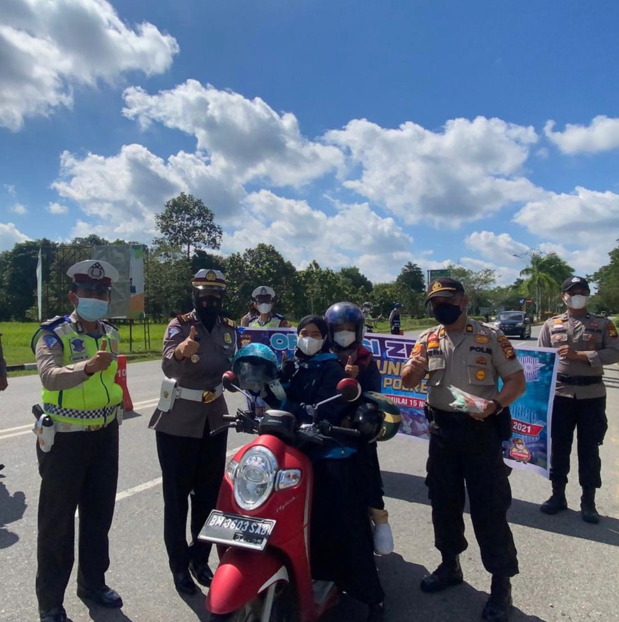 SIAK, – Di akhir pekan, hari ini minggu (21/11/2021). Pada hari ke -7 seminggu pelaksanaan Ops Zebra Lancang Kuning 2021 Polres Siak membagikan masker, handsanitizer dan vitamin kepada pengendara dan pengguna jalan yang tertib berlalu lintas dan patuhi prokes.