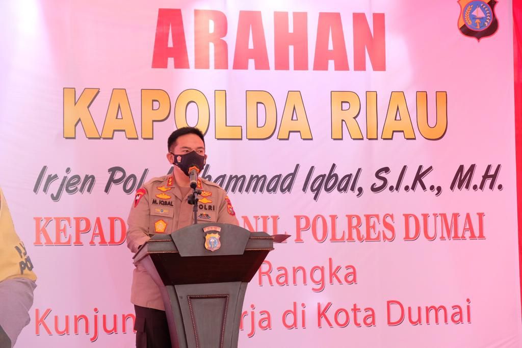PEKANBARU- Awal kunjungan kerja di Mapolres Dumai, Kapolda Riau Irjen Mohammad Iqbal Sik MH, langsung memberikan intruksi penting kepada seluruh personel Polres Dumai.