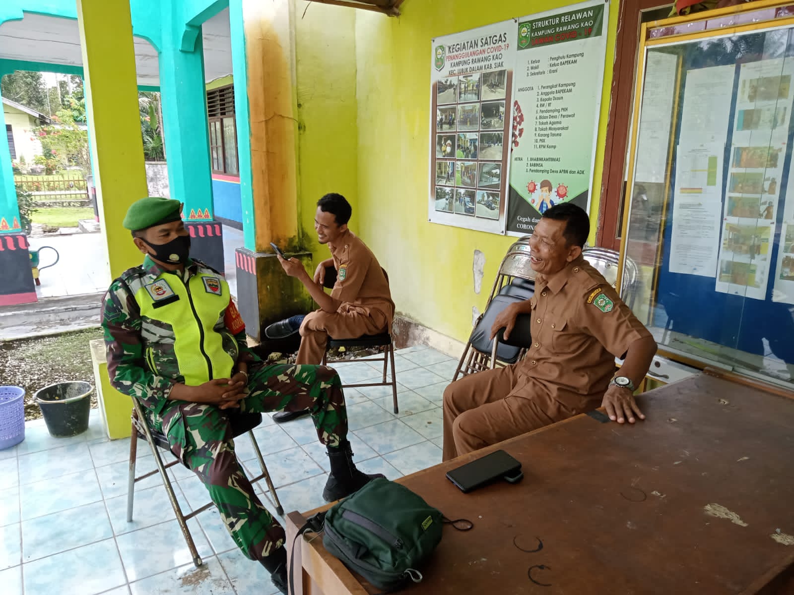 Lubuk Dalam – Guna meningkatkan hubungan kerja yang baik di wilayah binaan, Babinsa Koramil 03/Siak Kodim 0303/Bengkalis Serda S. Nasution melaksanakan Komunikasi Sosial (komsos) bersama perangkat Kampung Sri Gading Kecamatan Lubuk Dalam Kabupaten Siak, Jum’at ( 08/10/2021).
