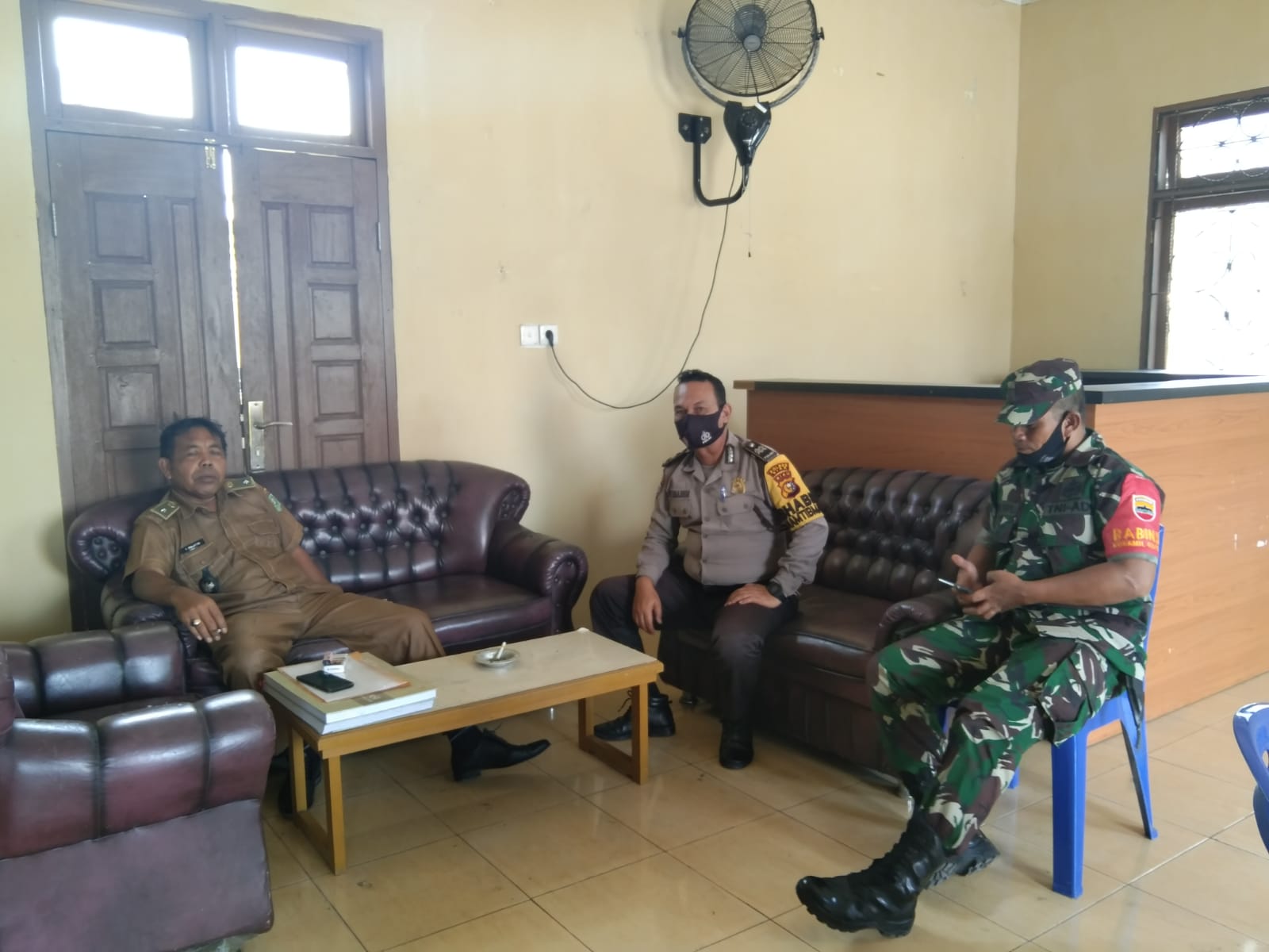SIAK- Jelang hari natal dan tahun baru, Bhabinkamtibmas bersama Babinsa koordinasi dengan penghulu Kampung Bukit Agung guna antisipasi penyebaran covid 19 di Kampung Bukit Agung, Kecamatan Kerinci Kanan,Kabupaten Siak. Senin,29/11/2021