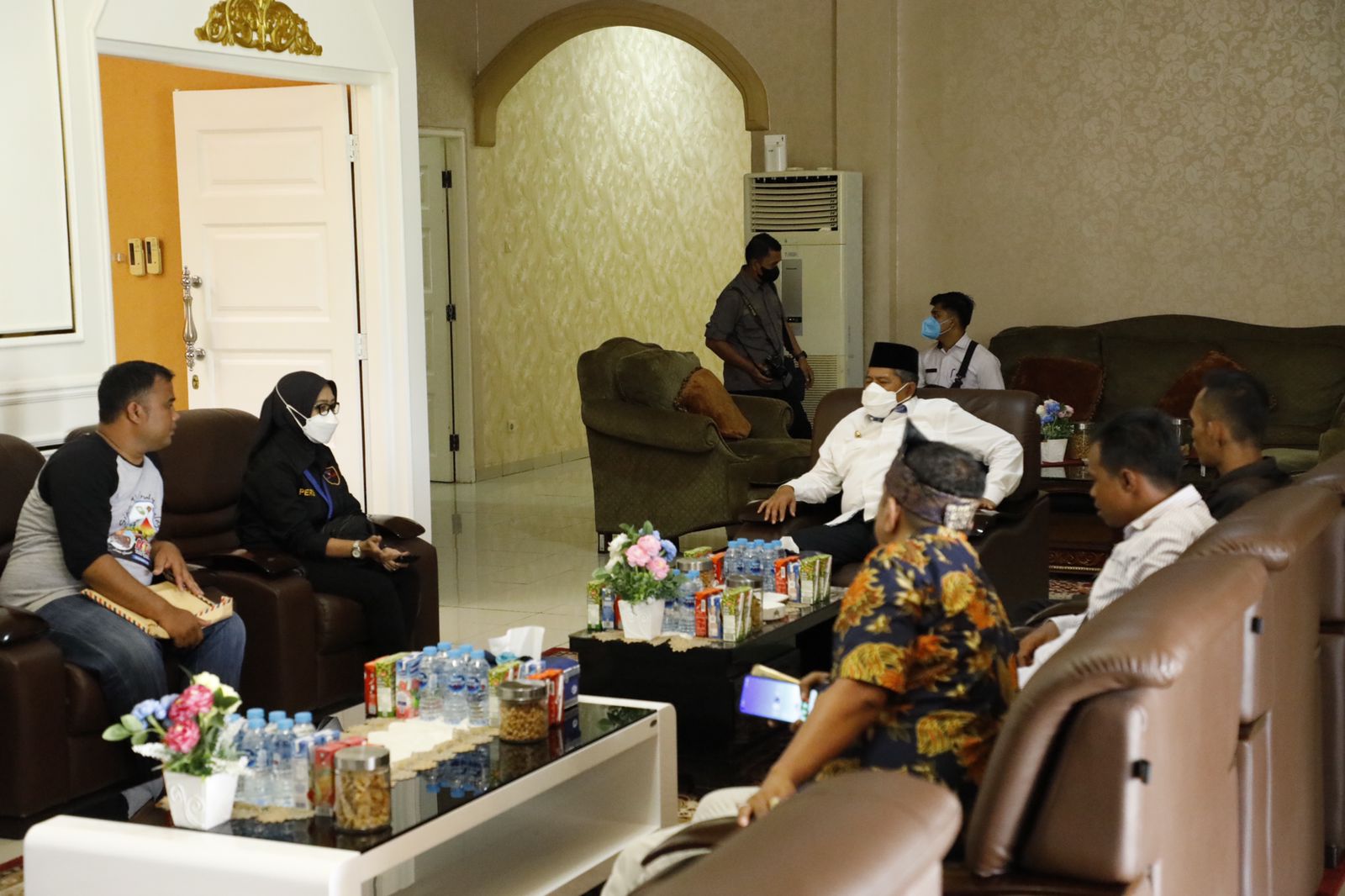 Rombongan yang terdiri dari Yanti Sugrianti (ketua), Indra Gunawan (wakil ketua), Effendi (sekretaris), Alfredo Ferdi (bendahara) dan Arif (Wakil bendahara) tersebut, diterima Alfedri di ruang tamu rumah dinas.