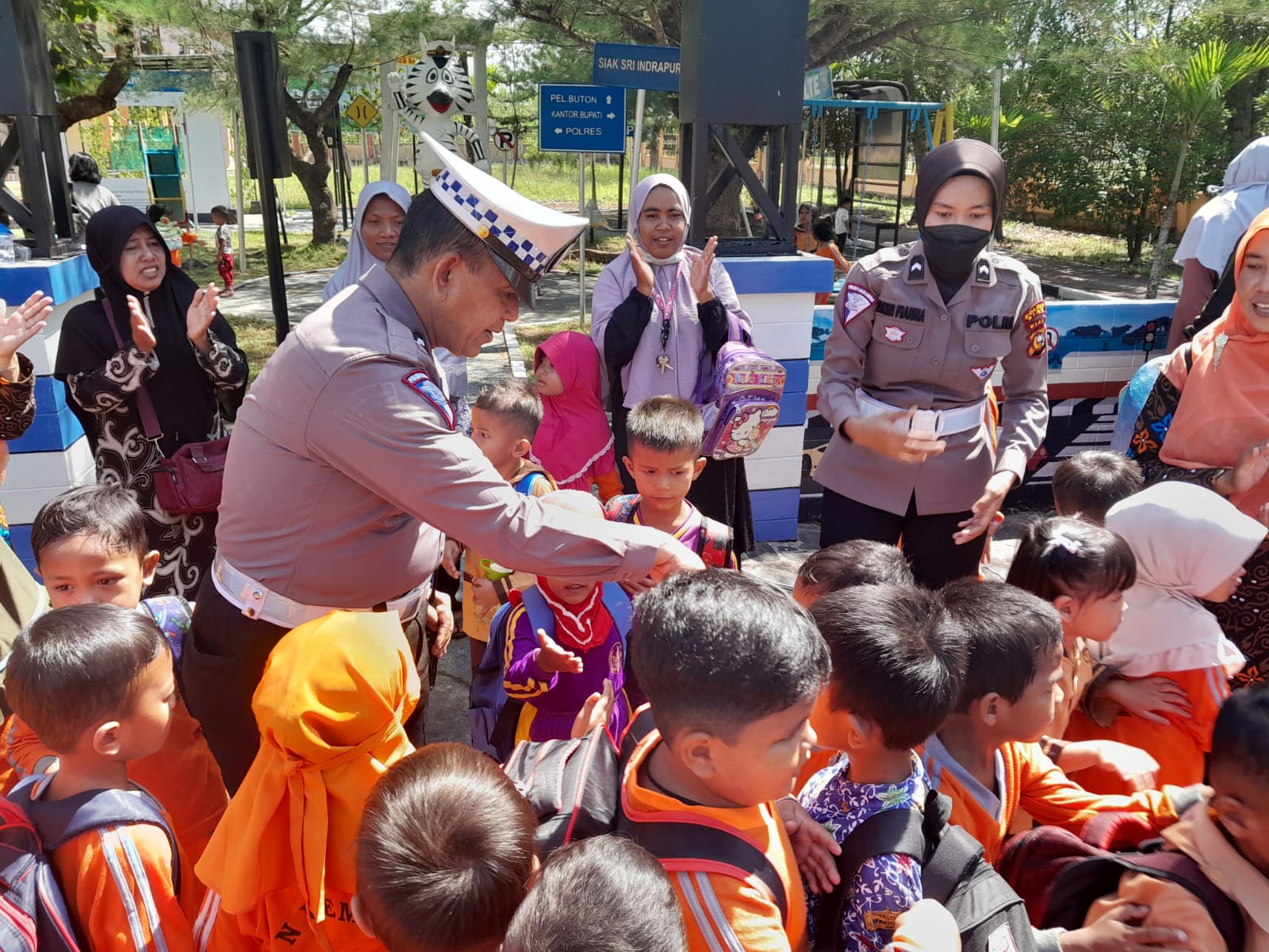Mereka diarahkan ke Taman Lalu Lintas Polres Siak dan memberikan pengenalan, memberitahukan bentuk dan arti dari Rambu Rambu Lalu lintas dan juga menyampaikan betapa pentingnya menjaga keselamatan di jalan raya. Terlihat sejumlah anak-anak TK Pembina begitu antusias dan bahkan beberapa diantaranya