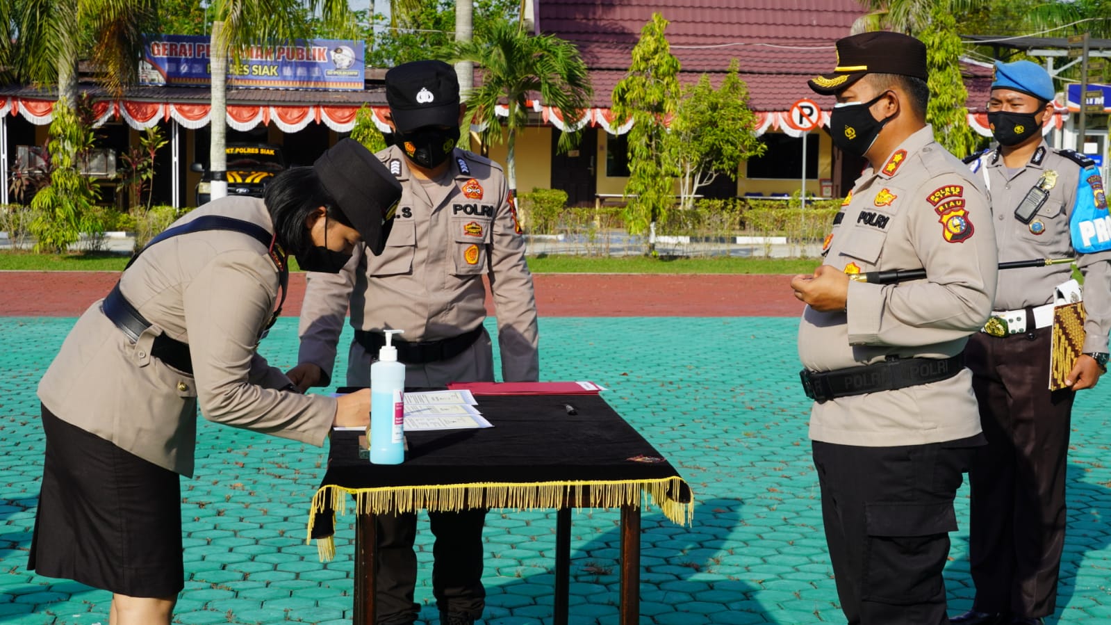Tampak Hadir dalam kegiatan Upacara Serah Terima jabatan tersebut, Waka Polres Siak, Kabag Sumda Polres Siak, Para Kasat Polres Siak, Para Kapolsek Jajaran Polres Siak, Ketua Bhayangkari Polres Siak beserta pengurus. Dan Para Kasi Polres Siak hingga Para Pama Polres Siak dan Seluruh Personil Polres Siak.