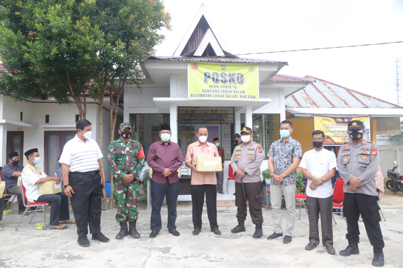 “Kita hari ini memberikan bantuan masker kepada pengurus tempat ibadah dan memberikan bantuan paket obat obatan serta sembako kepada warga masyarakat yang melakukan isolasi mandiri, ini merupakan salah satu perhatian pemerintah kepada masyarakat dengan harapan dapat meringankan sedikit beban masyarkat dan agar masyarakat juga bersama sama bahu membahu bagaimana supaya angka penularan Covid – 19 di wilayah kabupaten siak menurun.” Ucap AKBP Gunar