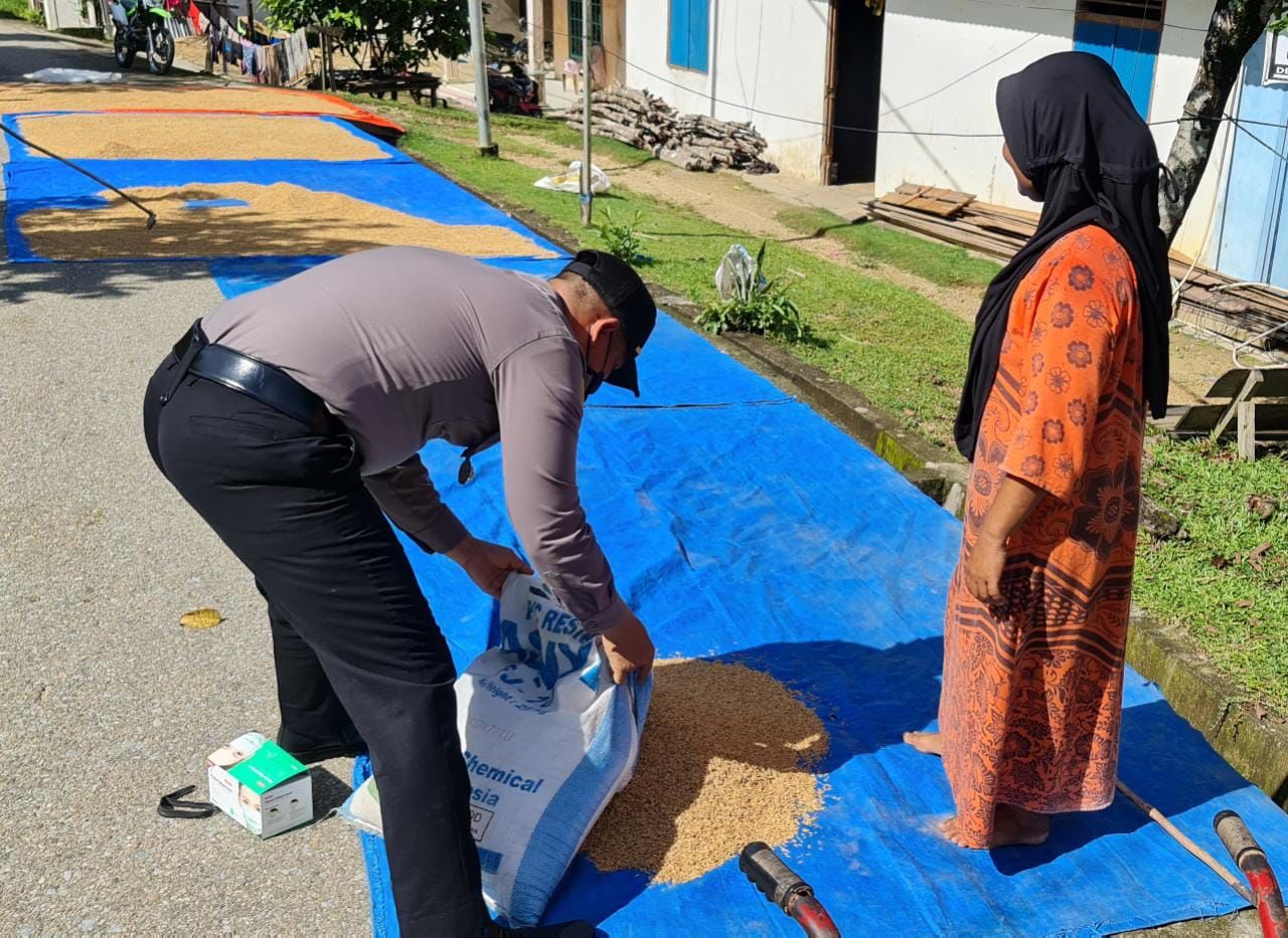 Hingga akhirnya, AKP Koko melihat seorang ibu bernama Isra yang sedang menjaga gabah yang sedang dijemur.